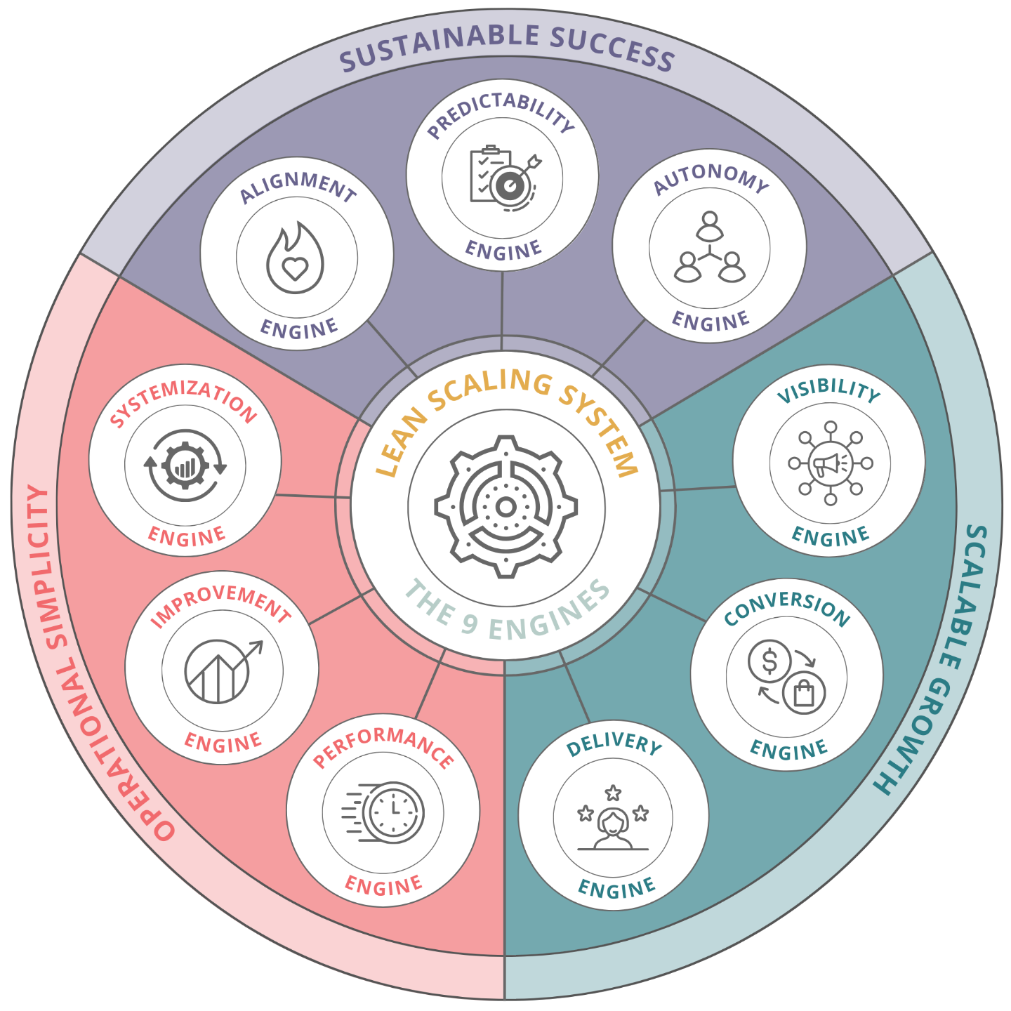 You will learn the Lean Scaling System (LSS) and how to apply it to the businesses you partner with or work in. LSS includes the 9 interconnected engines that propel the business forward, aligned to 3 core pillars: